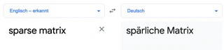 Even when using Google translate a translation which sounds wrong is given: spärlich. Google translate is converting sparse matrix to spärliche matrix (in German).