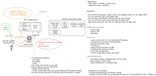 - Managing dependencies via modules or environment files; often using plain Conda environments