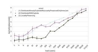 200 events per user per period for 3 periods. Load of users (x axis), processing time shown in logarithmic scale (y axis) for the 3 different implementations of a spatial join. Each one was run 5 times. The graph shows the mean and 95% confidence intervals as error bars.Abstract